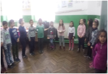 3-активност За крај се опуштија преку игра и песна. Учениците играа и пееја на детската мелодија ,,А рам ,сам, сам“.