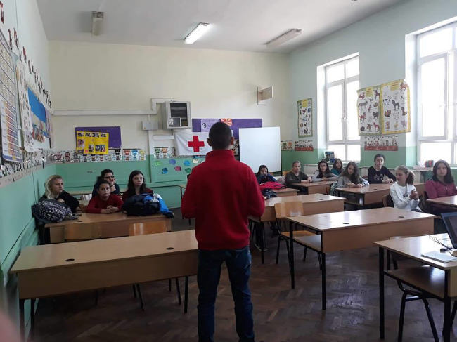 На 15.10.2018 година во нашето училиште се формираше Училиштен клуб на Црвениот крст. Се спроведе десиминациска сесија за присутните ученици кои се запознаа со движењето на Црвен крст, настанокот, амблемот, женевските конвенции и дополнителни протоколи како и основните принципи врз кои се темели работата на Црвениот крст. Присуствуваа 18 наши ученици кои имаат уплатено годишна чланарина од 100 денари и потполнија пристапници за членство. Овој клуб ќе работи според унифициран план на активности со цел постојано да се надоградуваат и прошируваат капацитетите на младинското работење.